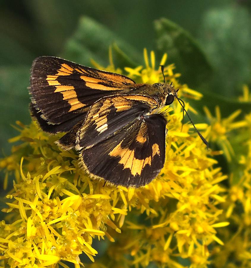 ♪ 晩秋の11月末頃まで咲くセイタカアワダチソウ。吸蜜するキマダラセセリ。