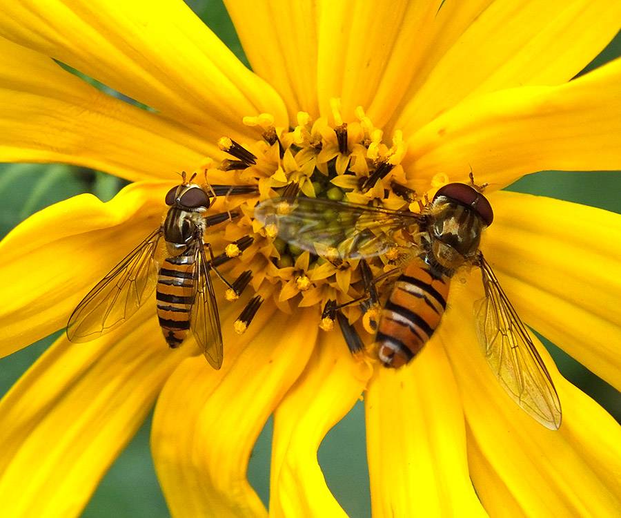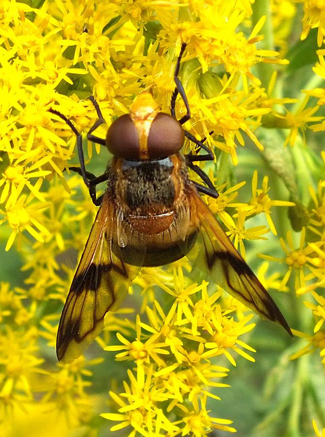 ♪ 同じく、セイタカアワダチソウにベッコウハナアブ。