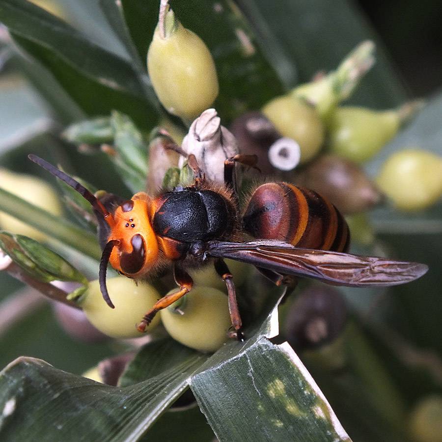 ♪ ジュズダマにオオスズメバチ。巣に近づくと、スズメバチに襲われることがありますが、それ以外の場所では、こちらが手を出さない限り何もしません。