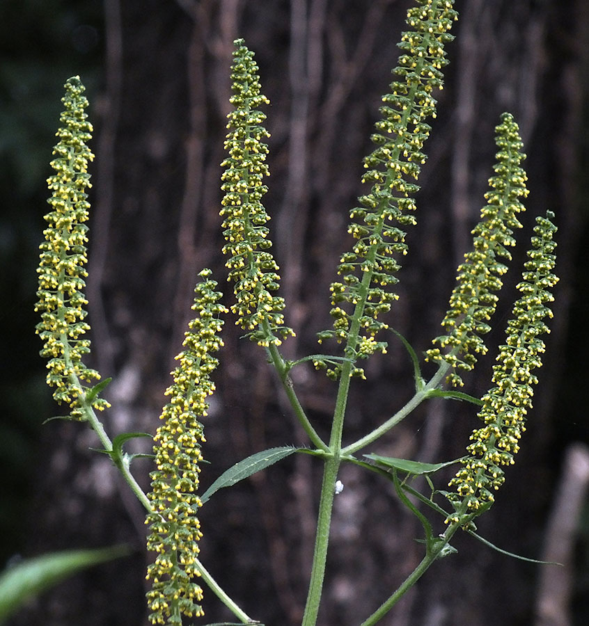 ♪ オオブタクサの花が黄色く色づいてきました。この花が秋の花粉症を引き起こします。日本ではスギ、ヒノキに続いてオオブタクサの花粉症患者が多いとか。