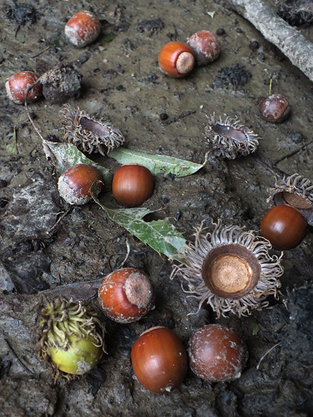 ♪ クヌギのドングリがすっかり茶色くなって、雑木林のあちこちにたくさん落ちています。