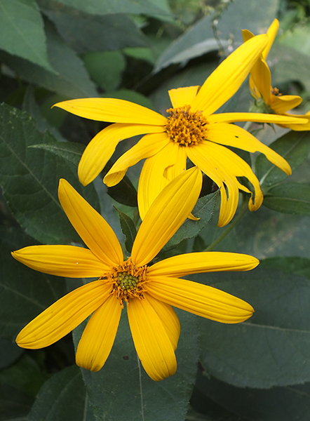 ♪ キクイモの花が、北池前の道沿いで咲き始めました。花の時期は9月から11月上旬ごろまで。。